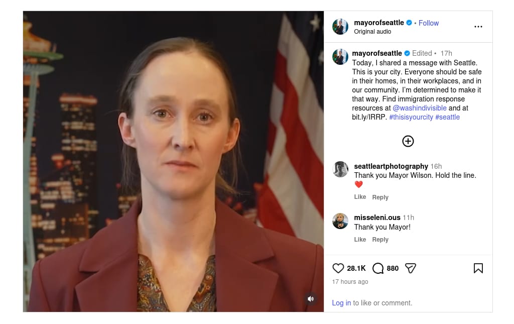 Meanwhile, in Seattle, masked ICE agents abducted three people and put them in an unmarked van, according to the Seattle Times. Mayor Katie Wilson issued a video statement about the kidnapping, saying "I am furious about the federal government's abuse of power." Seattle city council members Rinck, Foster, and Lin all issued strong statements opposing ICE enforcement in Seattle and council member Bob Kettle complained too, but mostly about training of the agents, not their mission to ethnically cleanse the United States.